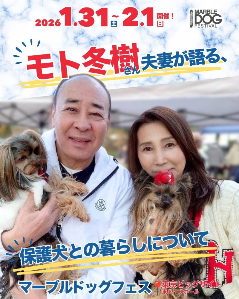 代表モト冬樹夫妻のトークショーがあります🐶